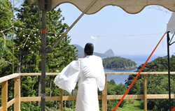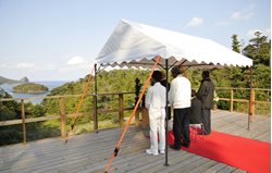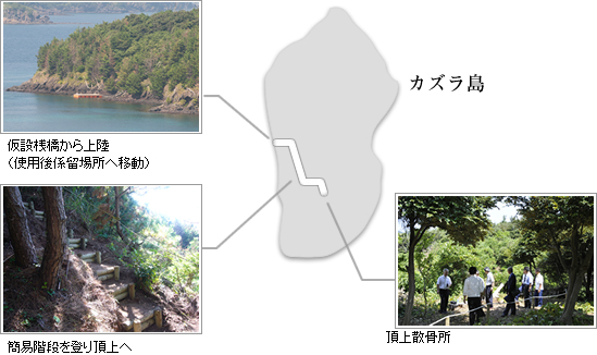 船でカズラ島に渡り、登頂階段を登って散骨所へ向かいます。